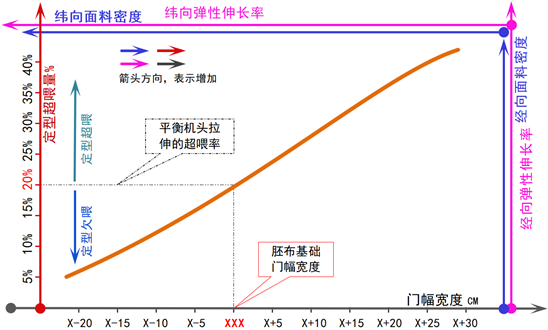 3、 定型設定的(de)門幅寬度與成品面料的(de)(密度)克重/彈性伸長(cháng)率”呈負相關關系。