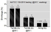 After repeated high temperature washing-drying, clothing made with XLA fabric will keep the flexibility comfortable and stable as before. Moreover, the size of clothing remains stable as well. The following test shows that XLA fabric will keep flexibility after experiencing washing and drying cycle for 50 times at temperature 95℃; The following chart shows the size stability of clothing made of XLA fabric after repeated washing: